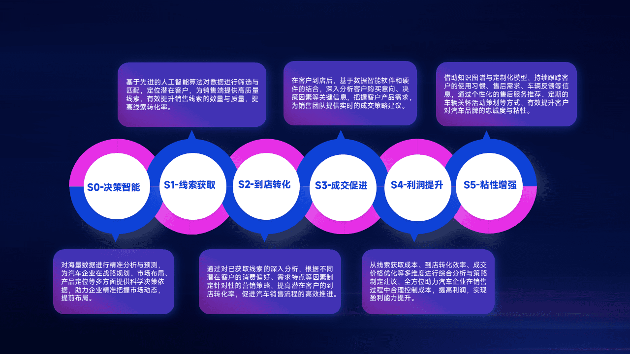 通过拓宽潜在客户来源、、、、优化线索分配并提高到店转化率,,,,以增强销售效率。。。同时,,利用线索数据不断优化分析模型,,,有效提升转化率,,扩大营销影响力。。